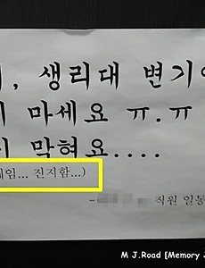 생활 속 기사.291 제9회 부산불꽃축제 하이라이트 동영상 모음 2부 광안리해수욕장에서 찍은 부산불꽃축제 동영상 아름다운 바다를 배경으로 펼펴진 부산불꽃축제는 다른 지역과 달리 낭만이 가득하다. 거기다 다이아몬드 브릿지라고 불리울 정도로 아름다운 광안대교에서도 멋진 불꽃쇼를 볼 수 있어 더 아름답고 멋진 풍경을 연출한다. 세계적으로 유명한 부산불꽃축제는 이제 부산의 랜드마크로 굳건히 다져진 듯 하다. ▶제9회 부산불꽃축제 하이라이트 동영상 모음 2013. 10. 28. 제9회 부산불꽃축제 하이라이트 동영상 모음 1부 제9회 부산불꽃축제 하이라이트 동영상제9회 부산불꽃축제가 오늘 광안리해수욕장 부근에서 펼쳐졌다. 세계적으로 유명한 불꽃축제다 보니 일본, 중국, 미국등 각 나라에서도 많은 관광객들이 부산불꽃축제를 보기 위해 광안리해수욕장에 모여 들어 불꽃축제가 열리는 시각도 되기전에 광안리 해변가로 들어 오지 못하게 통제를 하는 해프닝도 벌어졌다. 광안리해수욕장 백사장은 물론 도로에서도 신문지를 깔고 모두 앉아 사람들로 북새통을 이뤄 가면 갈 수록 부산불꽃축제가 세계적으로 유명한 축제로 자리매김했다고 해도 과언이 아닌 축제의 모습이었다. 그럼 제9회 화려한 불꽃의 향연 부산불꽃축제의 하이라이트를 동영상으로 준비했으니 직접 구경을 하지 못한 분들은 사진과 동영상으로 멋진 부산불꽃축제를 구경하시길 .... 아름다운 불꽃축제.. 2013. 10. 27. 기네스북에 등재된 영화의 전당 지붕 기네스북에 등재된 영화의 전당 지붕 2013. 10. 26. 화장실에 적어 놓은 문구에 빵 터진 이유.. 화장실에서 본 재미난 문구 pc방에 가면 예전과 달리 담배를 피는 사람이 없어 좋다. 하지만 화장실에 가면 여기 저기 피어 오르는 담배연기에 질식을 할 정도이다. 그래서일까 화장실 곳곳에 흡연을 하지 말라는 경고성 문구가 곳곳에 붙어 있다. 솔직히 이런 경고성 문구는 pc방 화장실 뿐 아니라 공공 화장실에서도 흔히 보는 풍경이다. 거기다 화장실에서 흔히 보는 문구중에 하나인 휴지를 변기에 버리지 말라는 것도 있다. 사람들이 많이 사용하는 곳이면 그런 문구는 당연하게 보게 된다. 그런데 얼마전 pc방 화장실에 갔다가 휴지를 변기에 버리지 말라는 문구을 보자마자 빵 터졌다거... 화장실 온 사방에 붙어 있는 문구...즉, ' 휴지, 생리대 변기에 넣지 마세요. ㅠㅠ 변기 막혀요..' 근데 이것을 보고 빵 터.. 2013. 10. 24. 노가리 파는 가게의 대단한 전시.." 이 정도면 예술이네.." 철마한우축제장의 재미난 풍경.. 2013. 10. 23. 철마한우축제에서 본 재미난 현수막 철마한우축제에서 본 재미난 현수막철마한우축제는 부산에서 유명한 축제 중 하나이다. 불과 몇 년밖에 안됐지만 지금은 전국적인 축제로 각광받는 행사이기도 하다. 이번 철마한우축제에 갔다 재미난 것을 봤다. 보통 축제의 현장에 있는 현수막은 축제를 알리는 현수막이 대부분인데 이곳은 좀 달랐다. 허허벌판에서 하는 행사라서 그랬을까.. 축제를 알리는 역활을 하는 현수막이 아닌 다른 용도로 활용되고 있었다. 내가 재미나게 본 현수막의 한 장면이다. '철마한우축제' 라고 크게 적어 많은 사람들에게 알려야 할 현수막이 화장실을 알리는 내용으로 적혀 있었다. 오히려 철마한우축제라는 알림은 화장실 아래 조그맣게 적여 있는게 고작이었다. 많은 사람들이 찾는 철마한우축제인데다가 허허벌판에서 벌어지는 축제라서 그런지 아무래도 .. 2013. 10. 22. 이전 1 ··· 31 32 33 34 35 36 37 ··· 49 다음 728x90