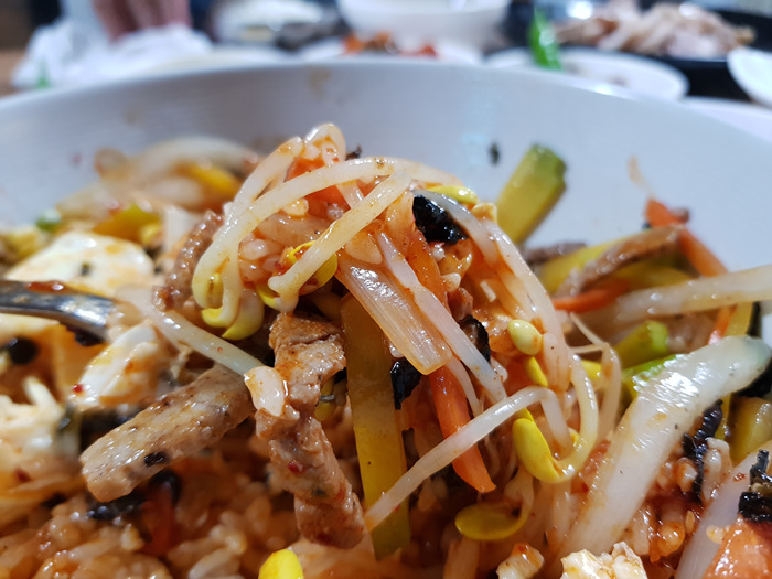 소고기가 마치 잡채밥에 나오는 고명처럼 올려져 더 푸짐하게 느껴졌던 소고기비빔밥이었습니다.