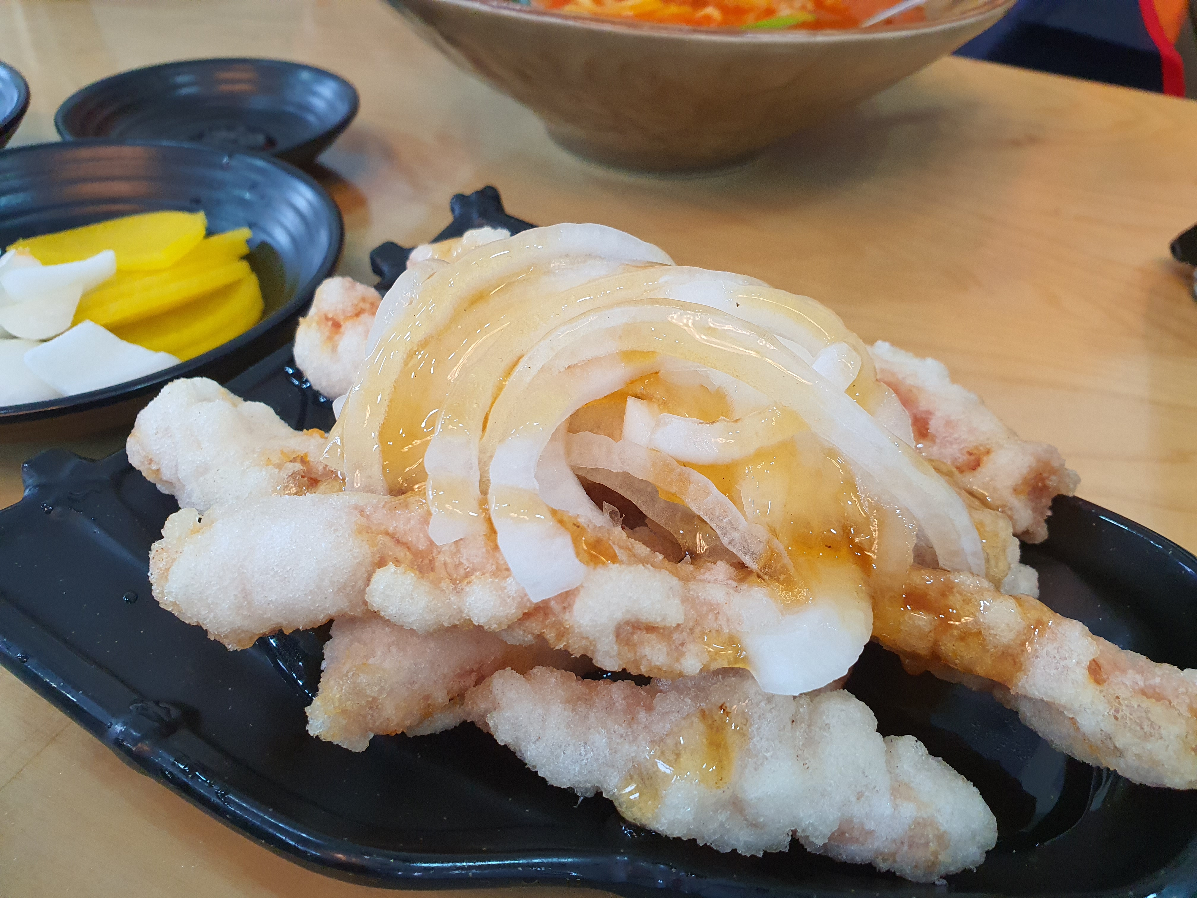 이곳은 차돌박이 짬뽕으로도 유명한 곳이다. 그래서 어김없이 오늘도 차돌박이 짬뽕을 주문했다. 짝꿍은 입맛이 없다며 작은 탕수육 하나 시켰다.