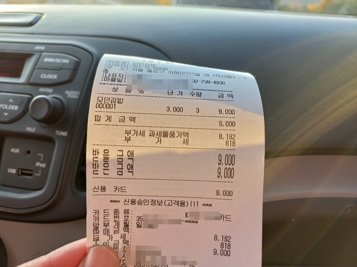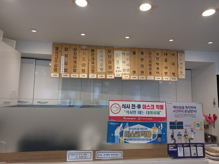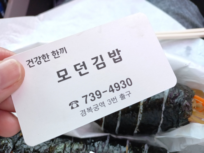 오래전에 이곳에 앉아서 기본김밥 (모던김밥) 이 아닌 다른 종류의 김밥을 먹었는데 이번에 기본김밥으로 테이크아웃을 했습니다. 늦은 점심이라 김밥 3줄을 주문했습니다.