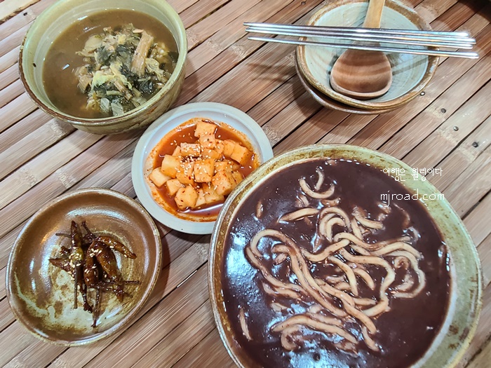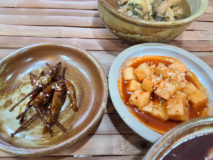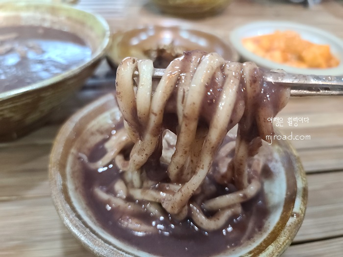 반찬은 고추지와 깍두기가 나온다. 팥칼국수랑 너무도 잘 어울리는 조합이라 리필을 해 먹을 정도다.