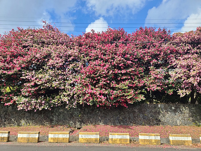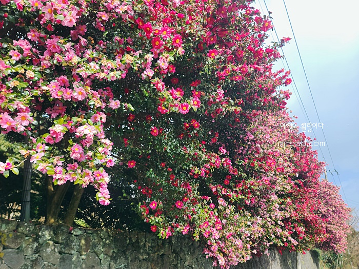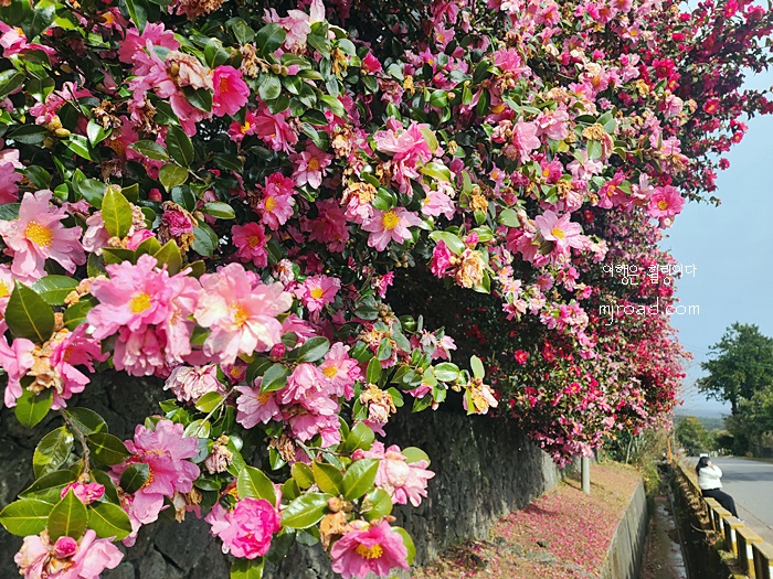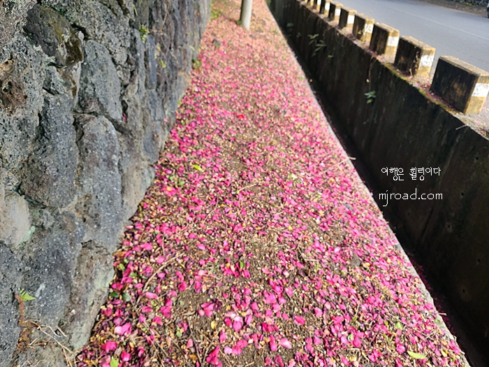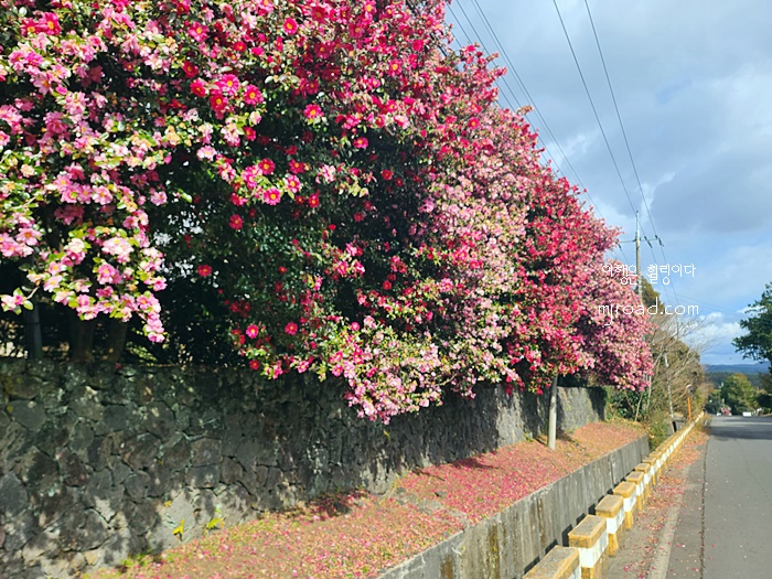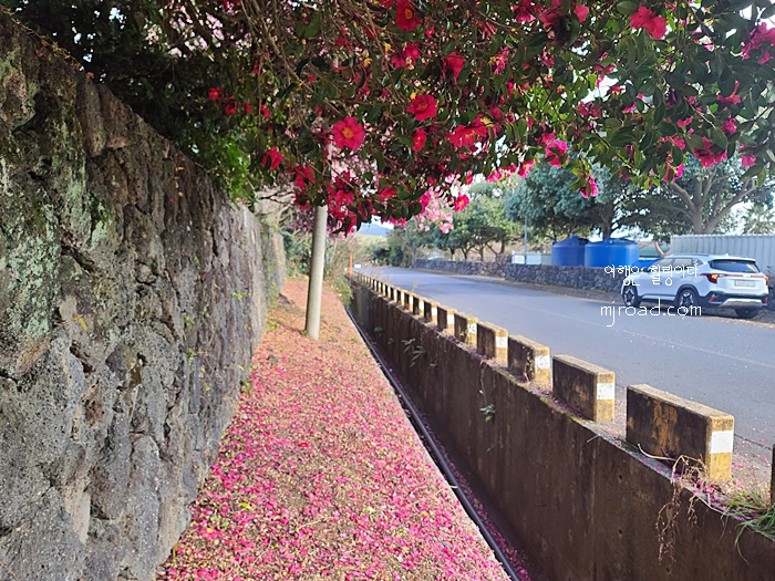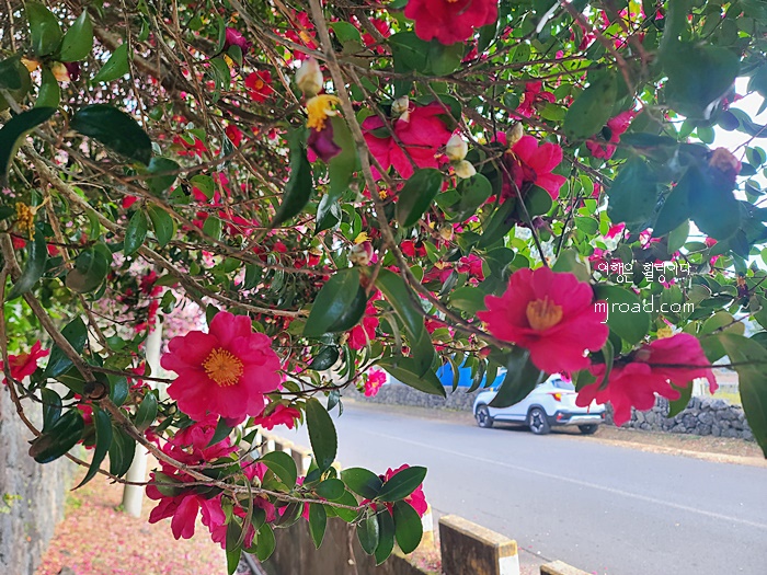 유료로 주고 잘 정돈된 동백꽃 군락지를 구경하는 것도 사실 좋은 추억이 되겠지만 이렇듯 드라이브를 하다 만나는 자연스럽고 낭만적인 길가 모습과 돌담이 너무도 잘 어우러지는 동백꽃을 보는 것도 생각지 못한 추억에 한 페이지를 써 내려갈 수 있다. 여행은 이렇듯 생각지도 못한 것에 더 낭만을 느끼고 휠링 하게 되는 것 같다.