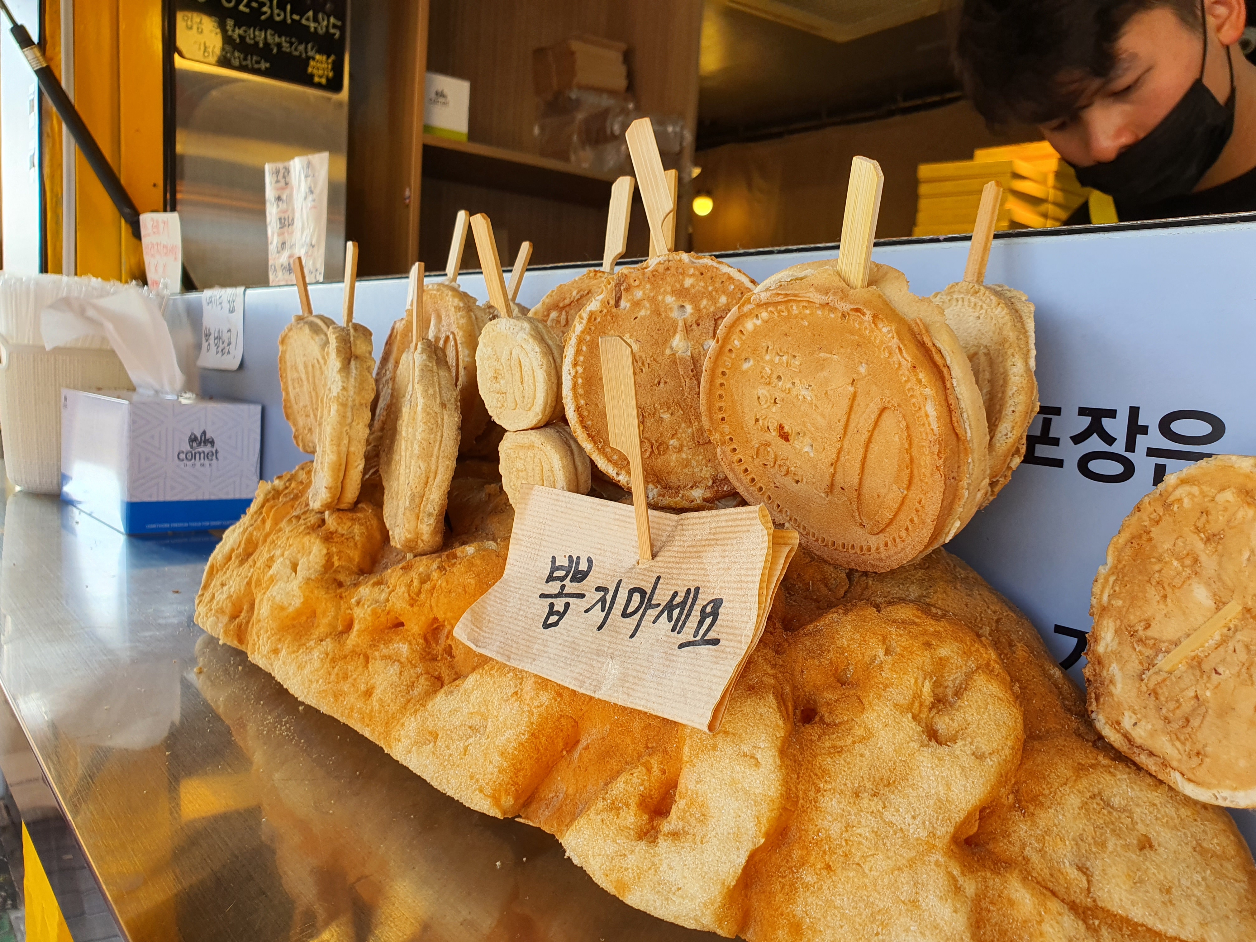 경주에서 제일 많은 사람들이 몰리는 황리단길은 10원짜리 빵 파는 곳이 많다.