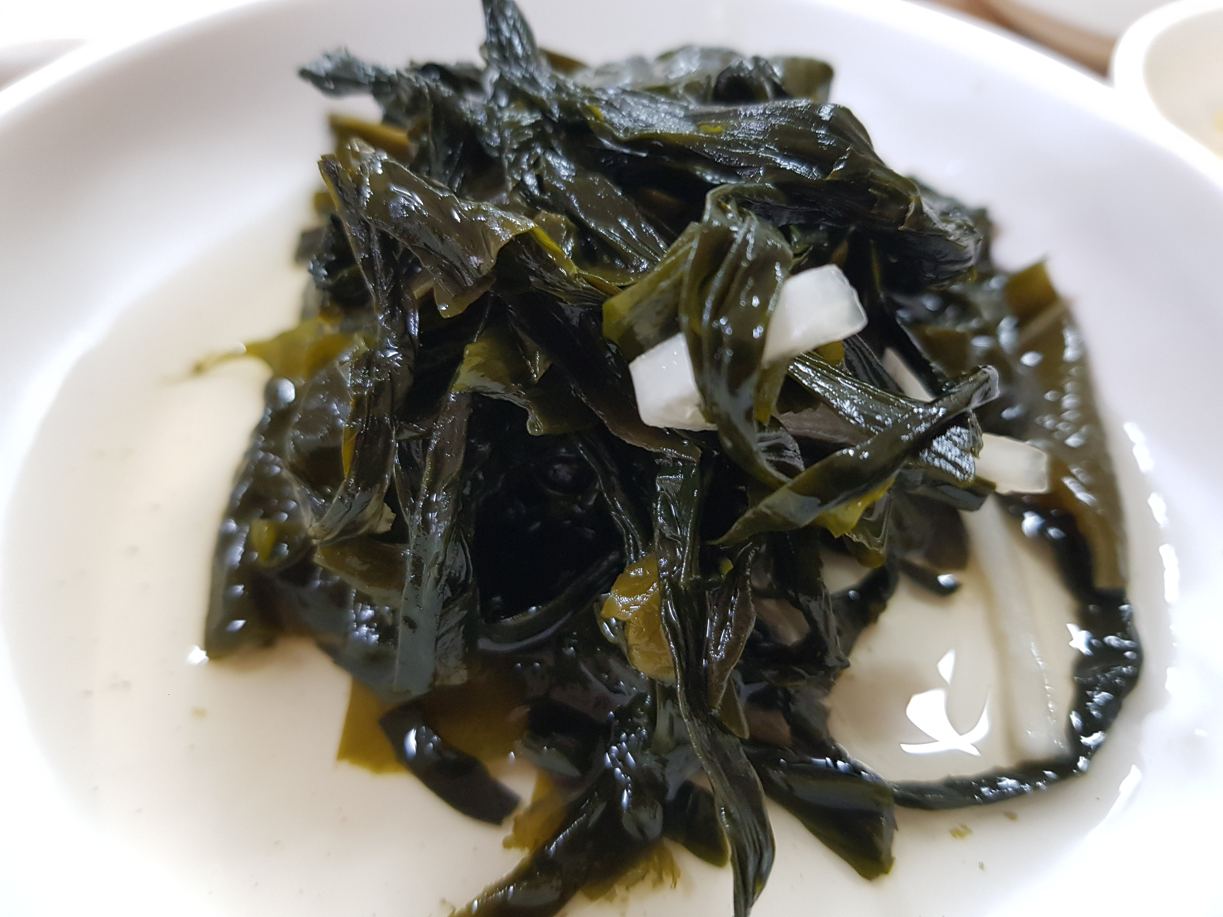 김치, 무생채, 양파, 미역 이렇게 4가지가 나옵니다.