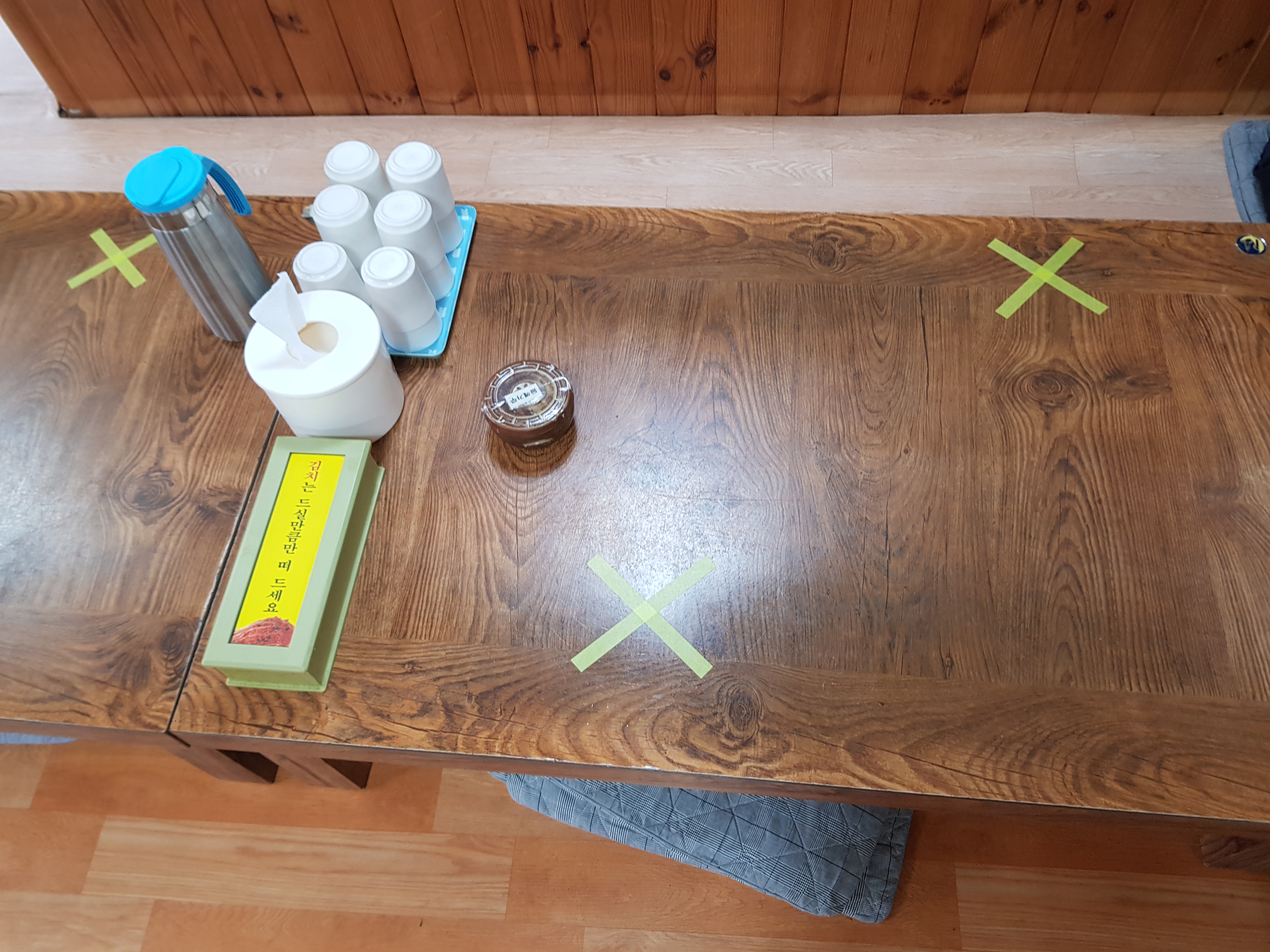 좌석에 ×가 표시된 곳은 앉지 않고 없는 부분에 우리도 앉았습니다. 이곳은 대부분 추어탕을 주문합니다. 반찬은 늘 한결같이 나옵니다.