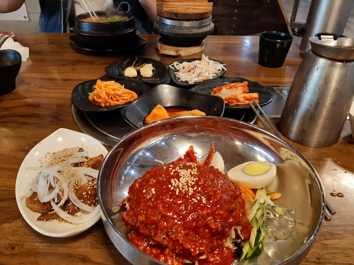 냉면정식은 양념돼지갈비와 함께 나왔습니다. 냉면은 고기와 함께 먹으면 정말 짱이긴 해요.