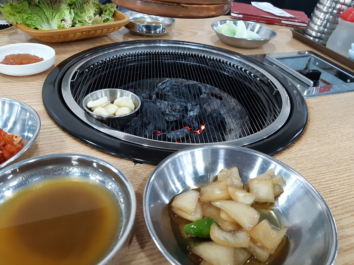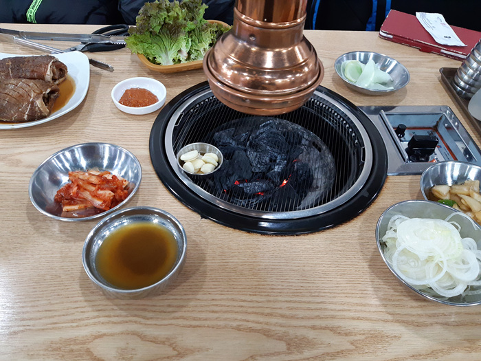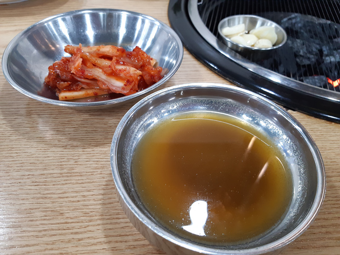 고기를 주문하면 기본세팅은 해 줍니다. 그리고 필요한 것이 있으면 셀프로 갖다 먹으면 됩니다. 우린 고기와 같이 먹기 위해 이집에서 유명하다고 하는 냉면 한 그릇을 주문했습니다.