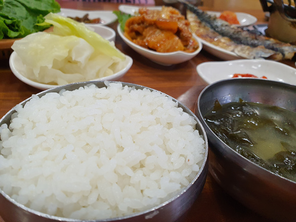 밥도 꾹꾹 눌러서 고봉으로 나와요. 따로 추가로 안드셔도 될 정도랍니다.