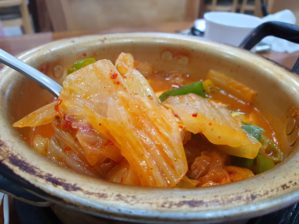 고등어구이가 나오는 정식을 주문하면 두루치기가 덤으로 나옵니다. 아참 대부분 고등어구이 정식 2인분을 주문하시는데 제가 팁을 알려 드리자면 고등어구이 1인분과 김치찌개를 주문하면 더 푸짐해요. 왜냐하면 가격은 2인분 18,000원이거든요.