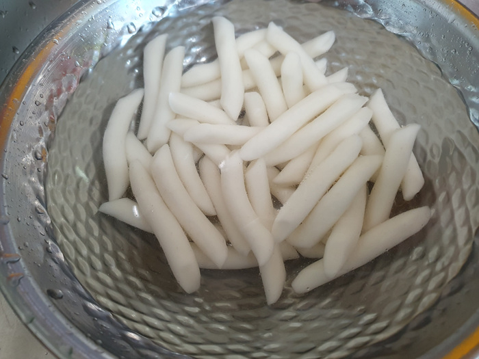 떡볶이 떡은 물에 한 번 헹궈줘야 위생적이고 괜찮더라고요.