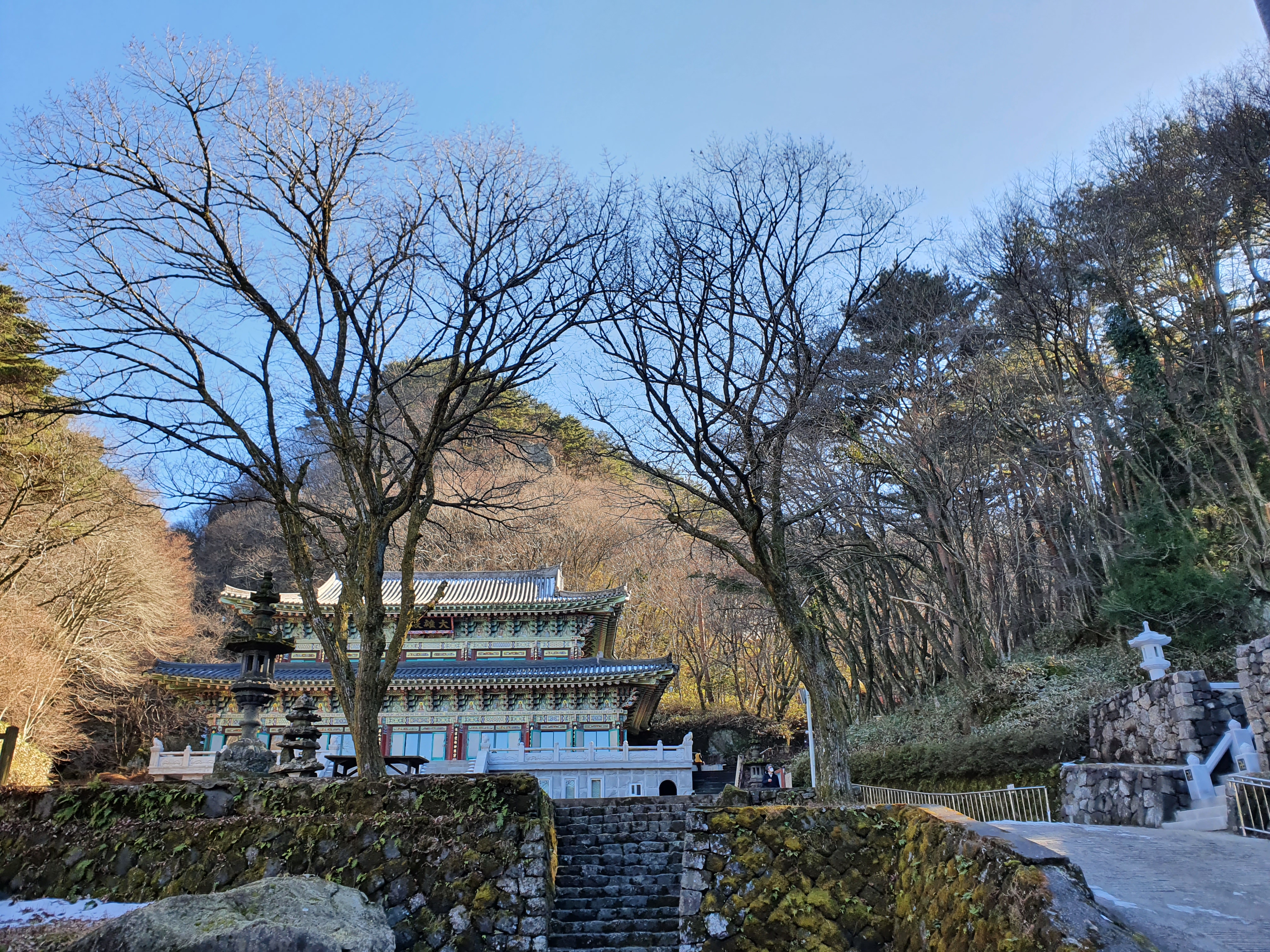 나무가 많아 바람이 불어도 생각보다 춥지 않아 좋고 하늘이 푸르러서 너무 좋았던 사찰 나들이였습니다.