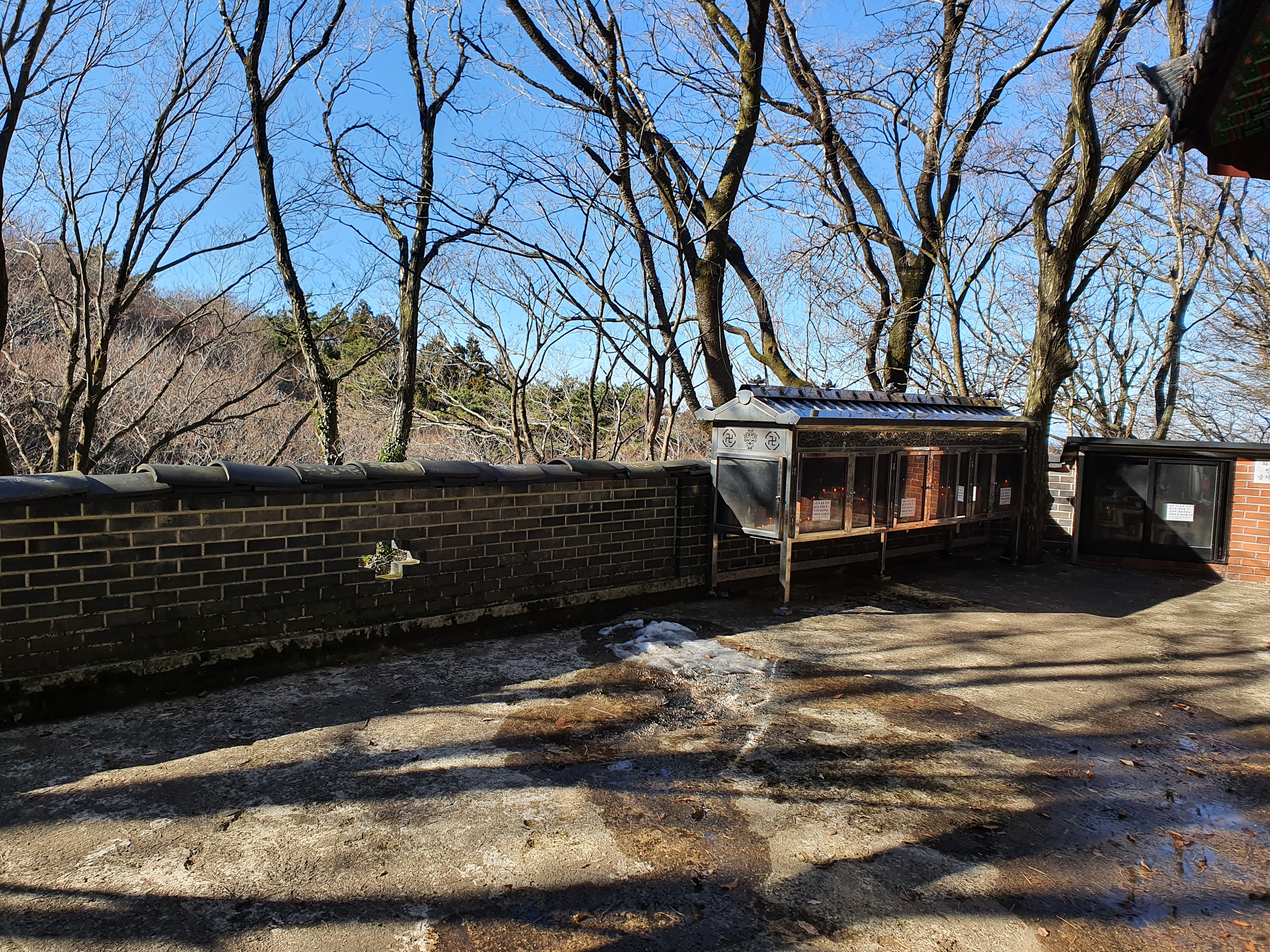 나무가 많아 바람이 불어도 생각보다 춥지 않아 좋고 하늘이 푸르러서 너무 좋았던 사찰 나들이였습니다.