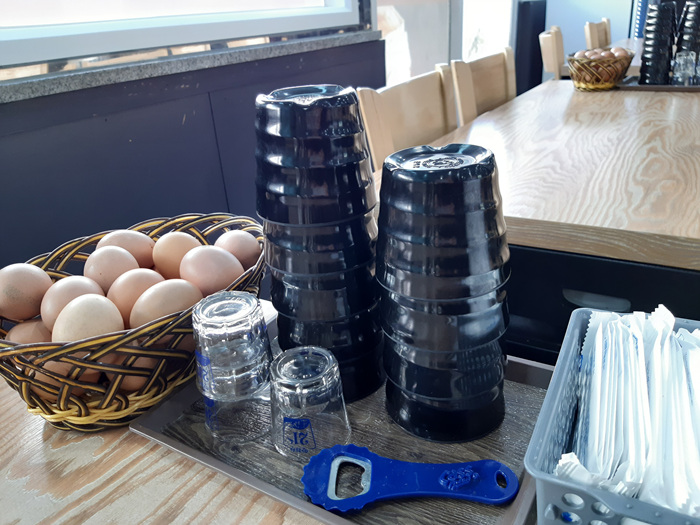 테이블마다 놓여 있는 날달걀이 인상적입니다. 순두부가 나오면 달걀을 넣어 먹게끔 해 두었거든요.