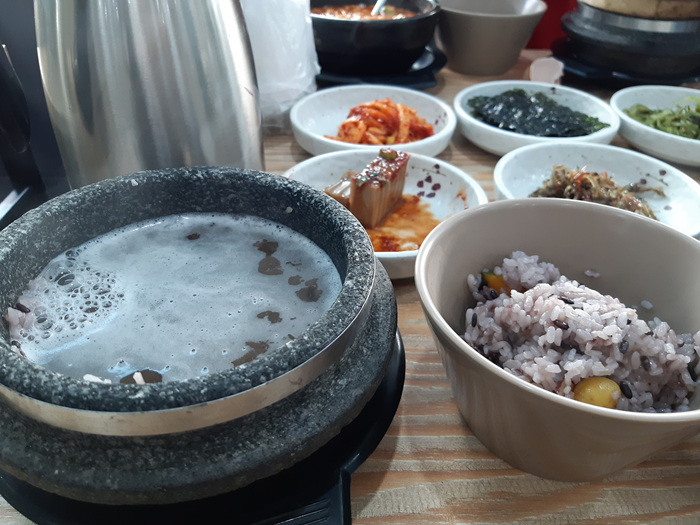 돌솥밥시간에 맞춰 순두부가 같이 나왔습니다. 갓지은 돌솥밥이라 사실 그것만 먹어도 건강해지는 느낌이 듭니다.