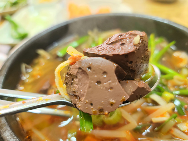 지인은 수구레국밥을 난 선지국밥을 주문했다. 다른 내장국밥과 달리 냄새가 전혀 나지 않는다는 것이 수구레국밥의 매력인 것 같다. 보글보글 끓어 나오는 국밥이 난 좋다. 장터국밥처럼 찬밥에 국밥 국물을 적셔가며 담아 주는 것 보다 난 이게 더 위생적인 느낌이라 좋아하는지도 모른다.