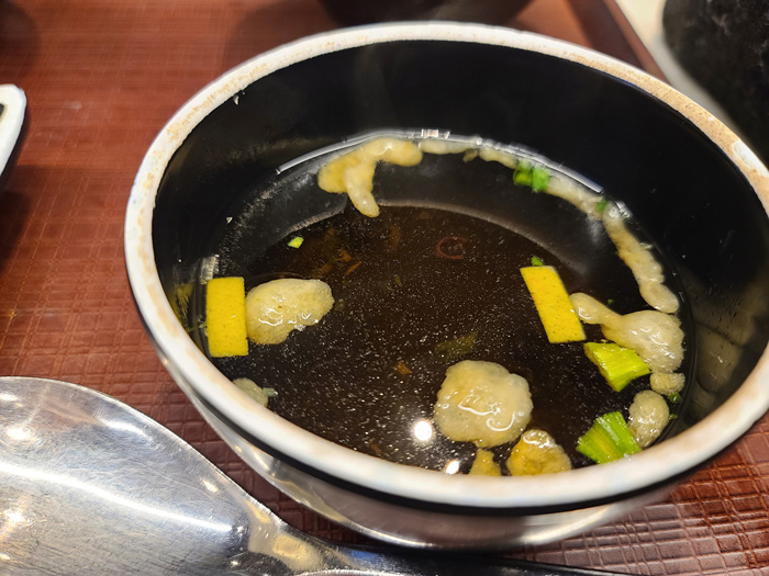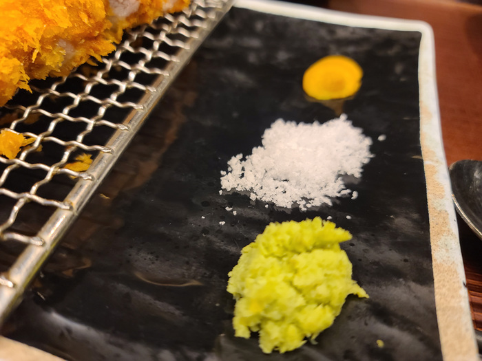 돈까스는 소금에 찍어 먹어도 되고 와사비를 소스에 넣어 먹어도 맛있습니다. 조금 아쉽다면 미리 세팅을 해 놓는 경우가 간혹 있어서 와사비가 말라서 나오는 경우도 있더라고요. 손님이 많이 몰리는 시간엔 어쩔 수 없긴 하지만 그래도 한 사람 한 사람 드시는 분을 생각해 주면 더 좋았겠다라는 생각을 해 봅니다.