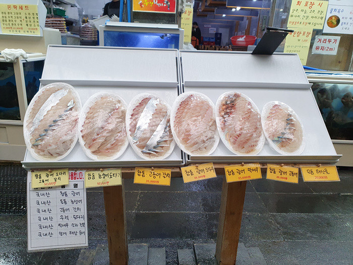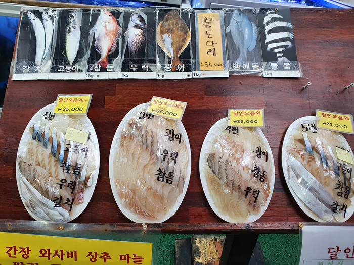 누가 봐도 쉽게 알 수 있는 가격표가 입구에 잘 제시되어 있고 무엇보다도 호객행위들이 거의 없는 그런 재래시장이었습니다.