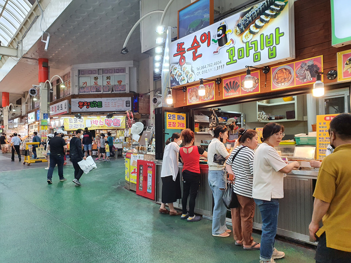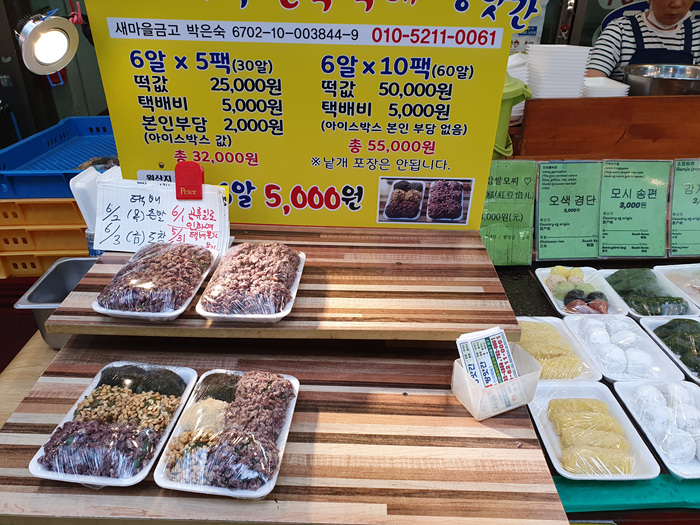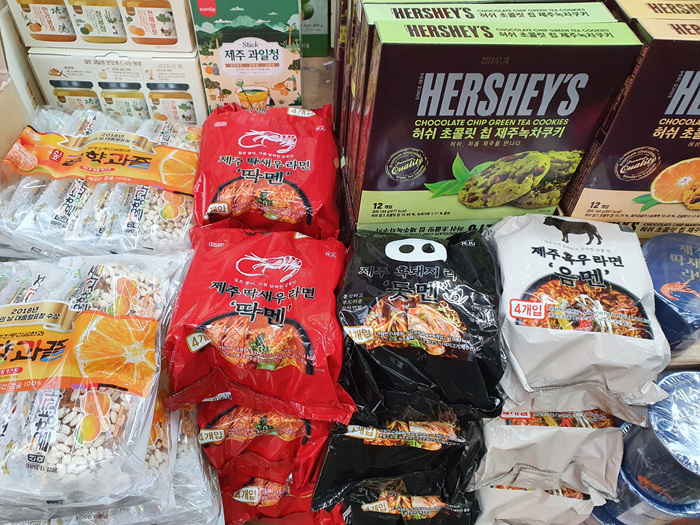 제주도란 섬이다 보니 해산물은 기본이고 제주도에서 유명한 떡이나 선물용 초콜릿 등 골라 사는 재미도 솔솔 합니다.