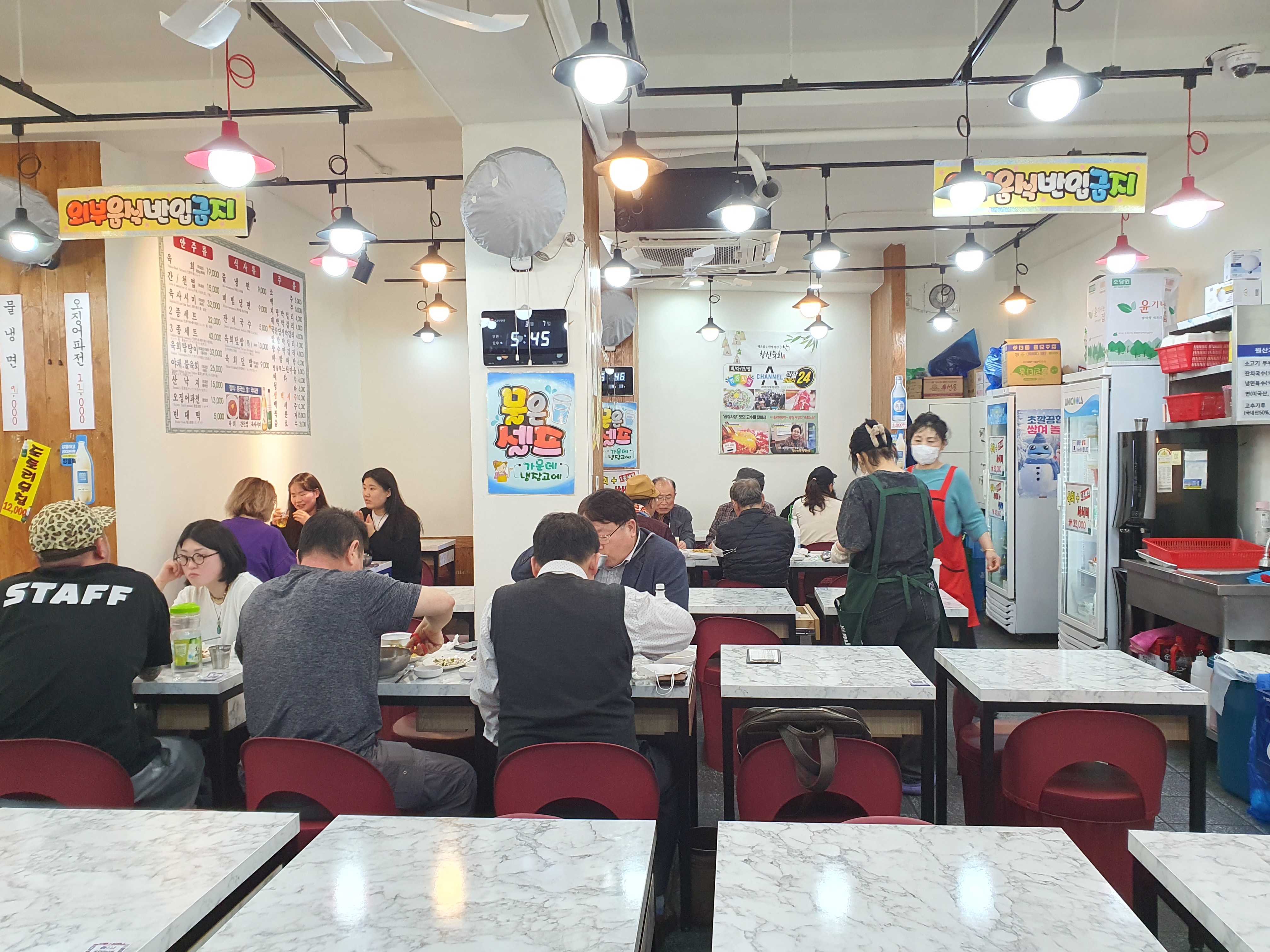 주문을 하면 간단한 찬과 국이 나온다. 국은 고기 몇 덩이 들어갔는데 국물이 진국이다. 고기국을 즐기지 않는다면 조금 느끼할수도 있다.