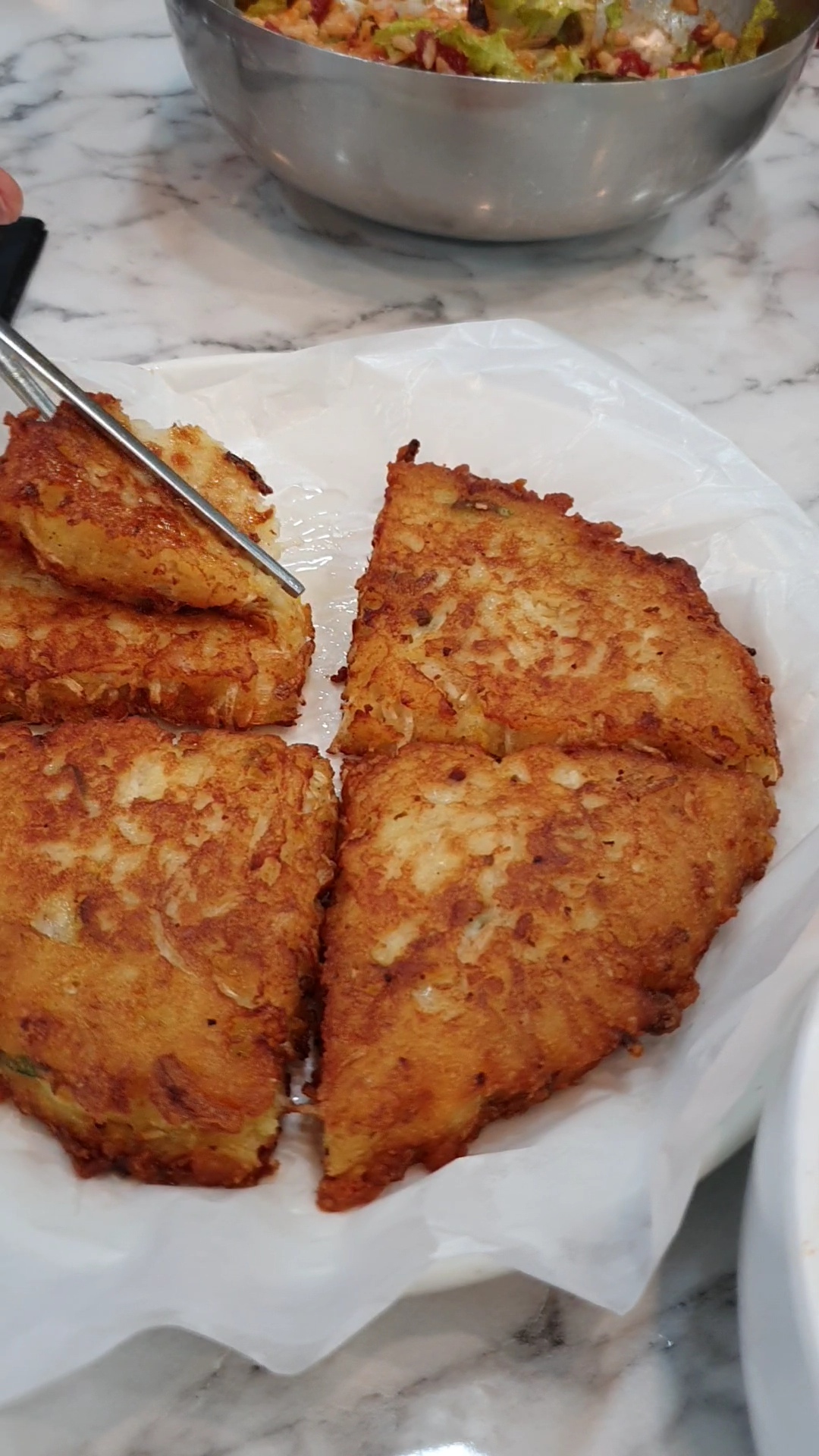 밥과 고기가 거우 반반 들어갔을 정도로 육회 양이 많다. 사실 이렇게만 먹어도 든든한 한끼로 충분하지만 광장시장에서 유명한 빈대떡을 안 먹으면 왠지 허전한 느낌이 든다. 그래서 주문한 녹두 빈대떡은 역시나 최고의 맛이다.