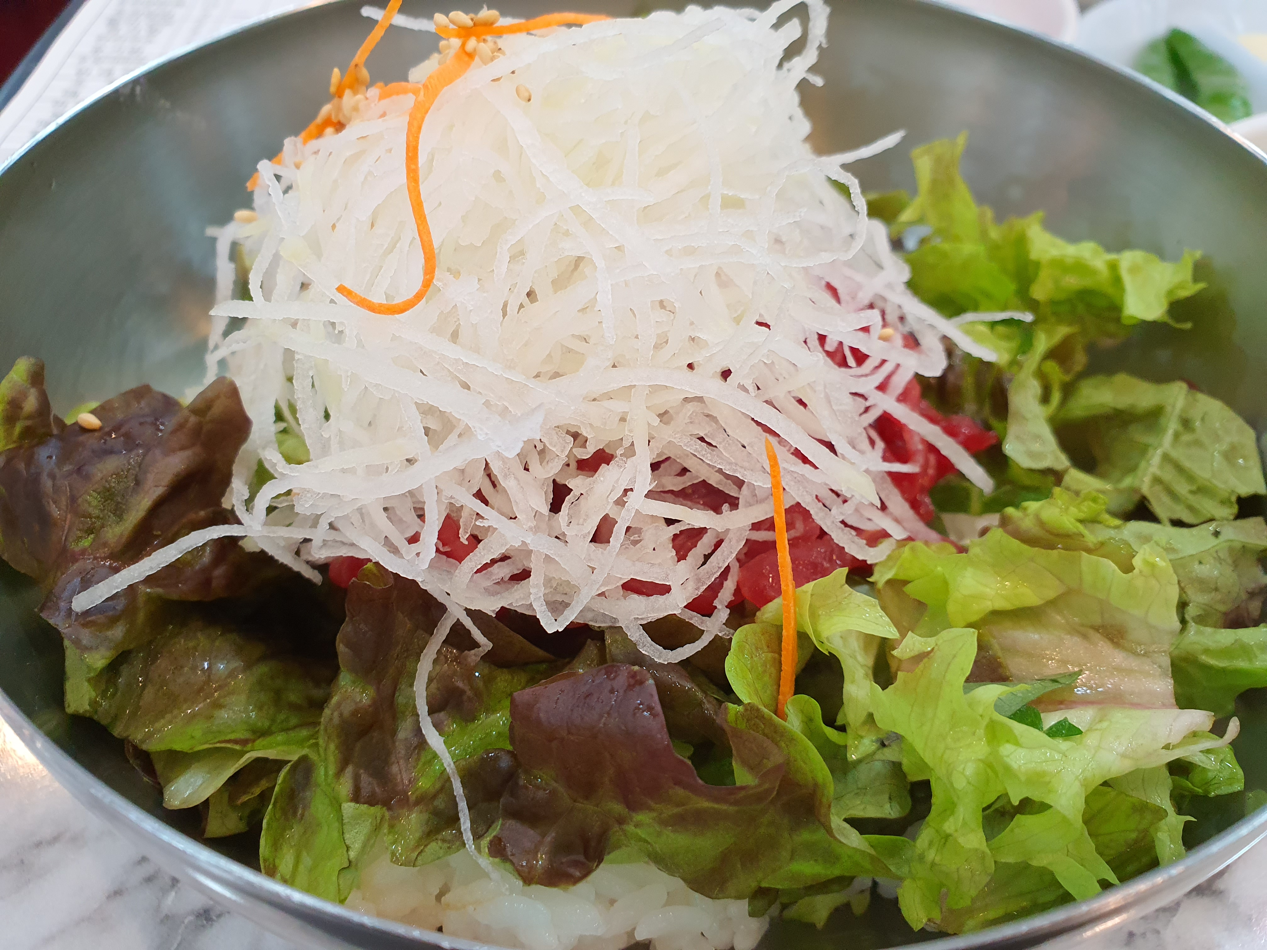 육회 비빔밥에 나오는 육회는 어찌나 신선하고 맛있는지 한번 먹어보면 또 생각나게 하는 음식이다.