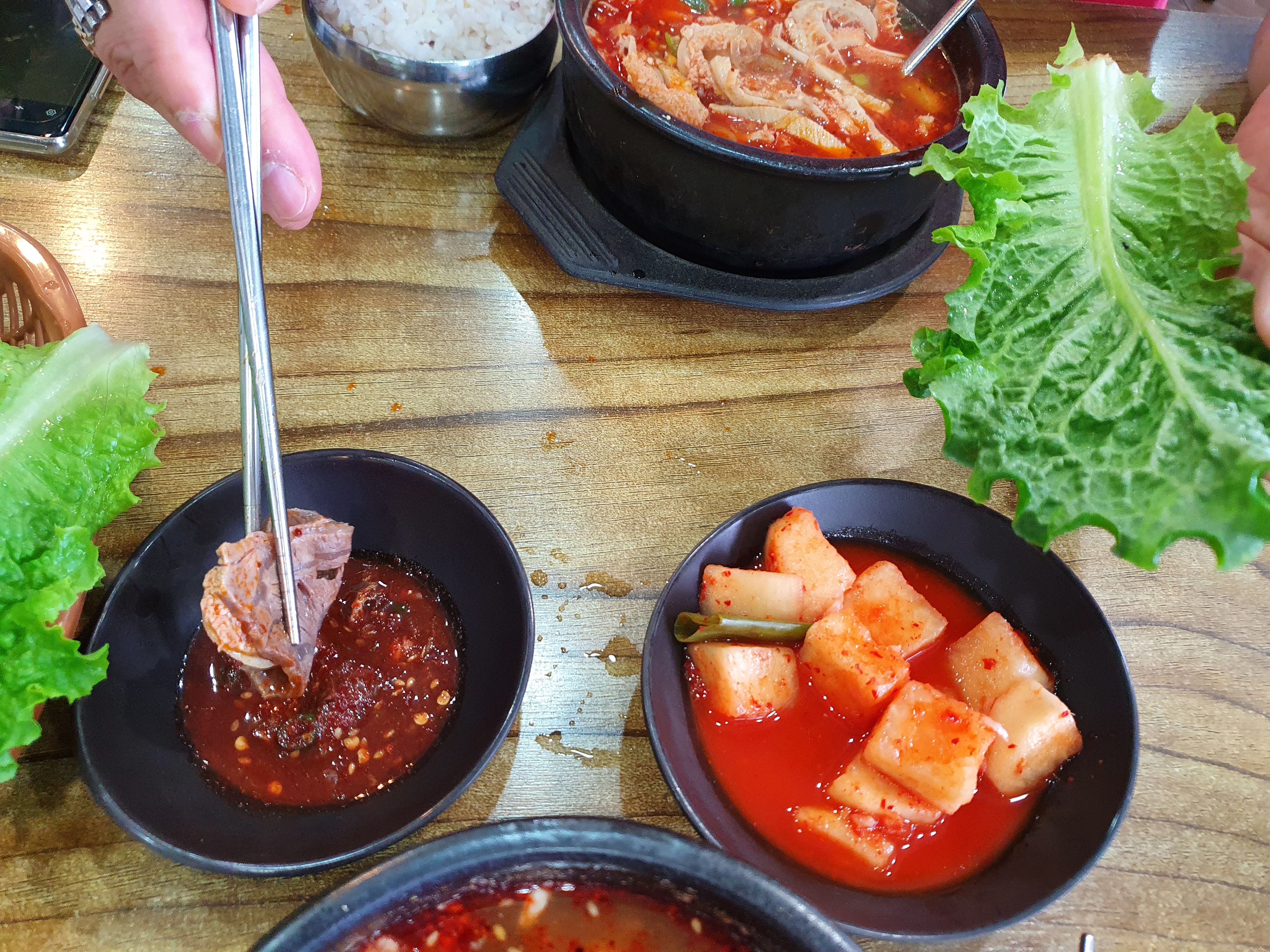 다른 해장국집과 다르다면 쌈장 대신 멜젓이 나오는 것이고요. 멜젓이 고기 구울 때 같이 곁들여 먹는 거라 생각하지만 이곳은 쌈장 대신이라 육지분들이 당황하는 경우가 많다고 하더군요. 관광객들이 많이 가는 곳이면 쌈장도 준비했으면 더 좋았겠다는 생각도 들긴 했답니다.