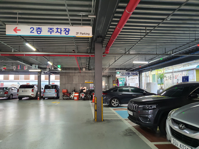 주차를 하고 난 뒤 주차장 안쪽에 연결된 시장 가는 길로 가면 된다.