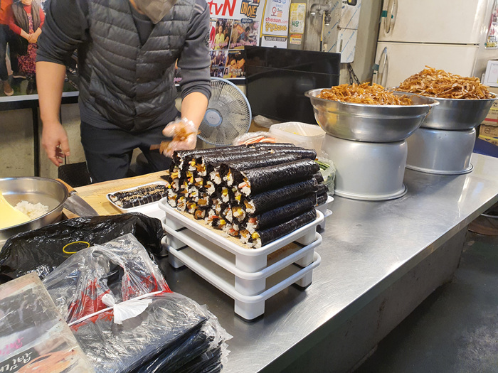 이곳 성동시장에서는 이른 아침에 요기를 할 수 있는 김밥집들이 많다. 그 중에서 각종 방송에 나와 유명세를 떨치고 있는 한 김밥집에 들러 김밥을 포장하기로 했다.