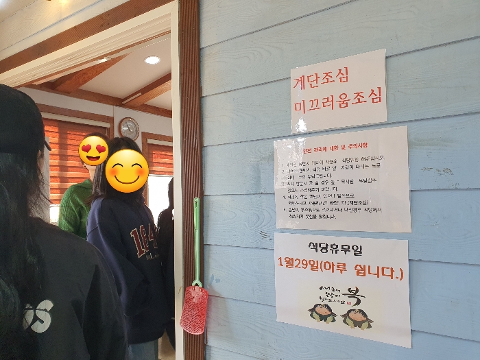 오~~~ 시골이라 명절연휴 다 쉴거란 생각을 했는데 딱 하루(1/29)만 쉰단다. 대~박!!! 사실 이곳은 거의 대부분 손님은 인근 주민이거나 제주도민들이다. 간혹 SNS를 통해 알고 온 관광객들이 있긴 하지만 밖에 주차한 차들을 보면 거의 제주도민이다. 하여간 명절연휴 내내 장사를 한다니 명절 지내지 않는 분들에겐 희소식이긴 하다.