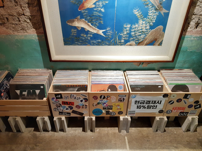 레트로 감성이 물씬 느껴지는 커피숍 내부엔 LP판도 있어 추억을 곱씹게 하기 충분했습니다. 따로 판매도 하고 있었습니다. 많은 종류는 아니지만 조금 신기하기도 했습니다. 요즘엔 보기 드문 그런 것들이라..
