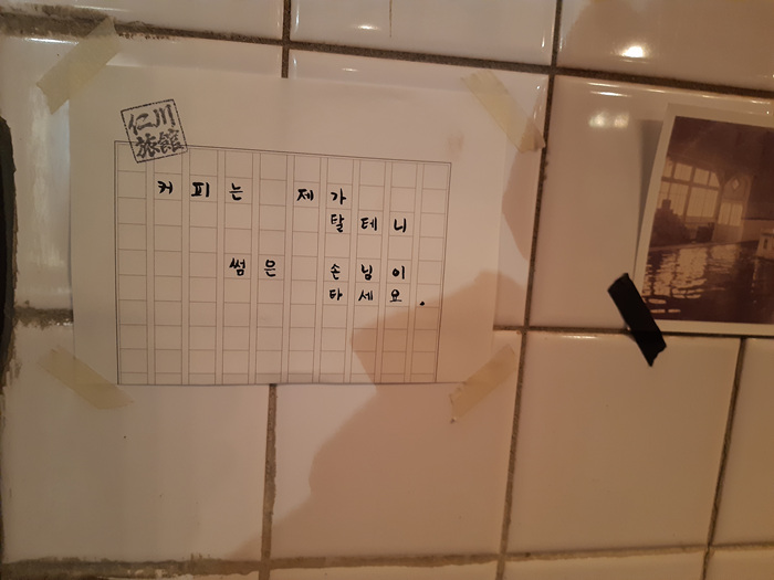 인천 여관, 인천 여인숙이란 글귀가 적혀 있는 간판이 옛 모습 그대로입니다. 사실 지금도 여인숙과 여관의 차이점을 잘 알지 못합니다. 하여간 이곳에 들렀을때는 정말 좁은 방이라는 사실과 욕실이 있었던 좋은 방인 것 같은데 왠지 아이러니한 욕실의 모습도 신기하게 느껴졌습니다.