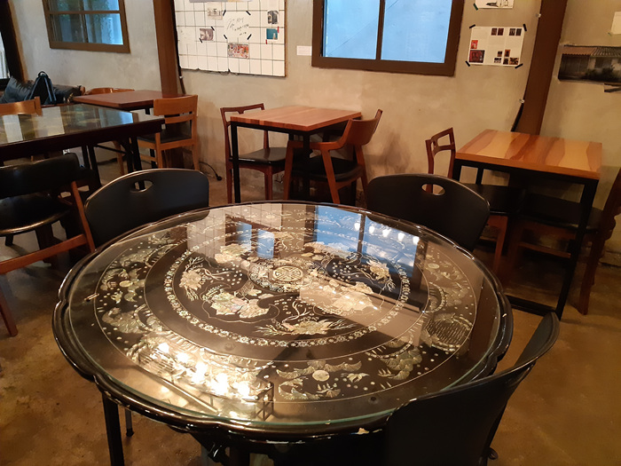 커피숍 내부는 옛날 물건이 가득한 그런 곳입니다. 나름대로 잘 어울리는 컨셉이었습니다. 어디서 자기로 된 상과 장농을 구했는지 참 재밌었습니다. 옛날 물건들을 보니 레트로 감성이 절로 나오더군요. 집에서나 보던 그런 장농이 커피숍에 있다니 말이죠.