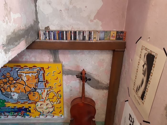 조명도 화려한 듯 하지만 그렇게 화려하지 않습니다. 감성 제대로 느끼게 하는 그런 조명입니다. 마치 옛날 카바레 같은 느낌도 들고...그러고 보니 벽에 흰 타일도 이곳이 욕실이나 방이 아니었나하는 생각을 지울수 없네요. 1층은 이렇듯 전체를 다 트임을 해 넓은 거실 같지만 2층은 방 하나 하나 옛 모습을 그대로 보존되어 구경할만 하더군요.
