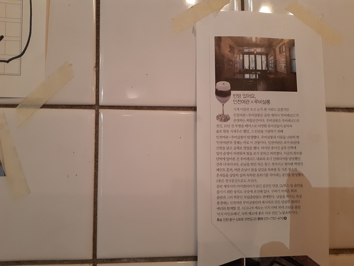카운터 내부는 마치 옛날 음악다방 같은 느낌도 물씬 나더군요. 이런거 은근 매력적이고 좋습니다. 다만 음악도 LP판으로 틀어줬음 더 좋았을텐데하는 생각도 스쳐 지나가더군요. 그래도 옛날 레트로 감성 음악이 나와 좋았네요.
