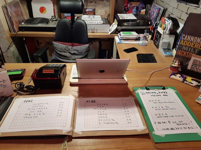 카운터 내부는 마치 옛날 음악다방 같은 느낌도 물씬 나더군요. 이런거 은근 매력적이고 좋습니다. 다만 음악도 LP판으로 틀어줬음 더 좋았을텐데하는 생각도 스쳐 지나가더군요. 그래도 옛날 레트로 감성 음악이 나와 좋았네요.