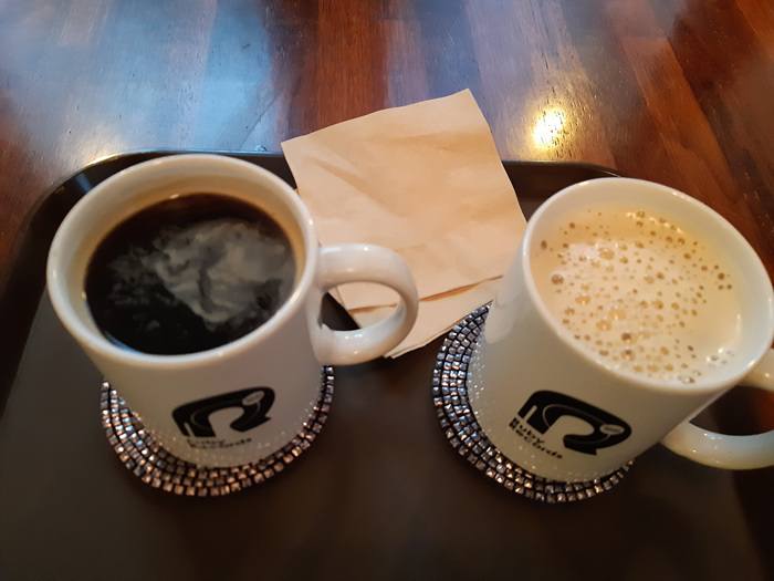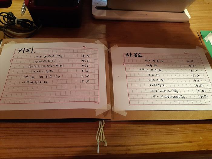 커피숍이지만 마치 다방같은 메뉴들이 있습니다. 전문 바리스타라고 하기 보다는 옛날 다방 주인같은 느낌이 많이 들었습니다. 가격은 여느 커피숍과 비슷합니다. 우린 아메리카노와 더치라떼를 주문했습니다. 참고로 여관커피는 옛날 다방커피라는 이야기...재밌죠..