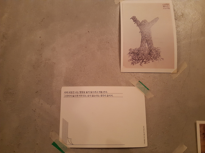 벽 곳곳에 붙어 있는 옛날 사진들이 추억을 느끼기에 충분했습니다. 이런것들도 모두 인테리어 소품으로 활용된다니 신기하기도 하고요. 주인장의 감성도 조금 느껴지기도 했네요...