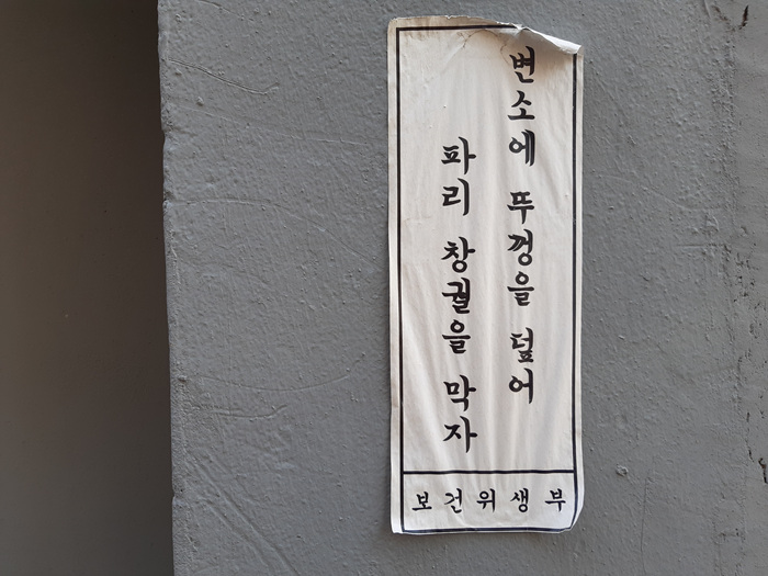 보건위생부에서 만든 포스터 글귀인 듯... 하여간 옛날엔 파리, 쥐. 바퀴벌레 참 많았지요.