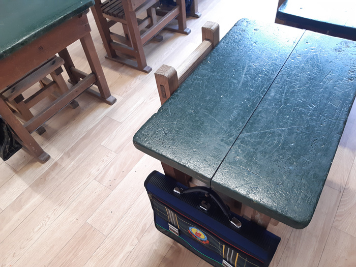 옛날 책상과 의자... 그 당시엔 이렇게 키가 작았나 할 정도로 작아 보이는 책걸상의 모습....