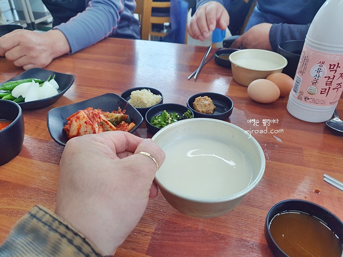 해장을 하러 왔다가 막걸리를 부르게 하는 해장국이 바로 산지해장국이 아닐까싶다. 지인들과 막걸리를 나눠 먹으면서 나누는 소담도 은근히 소소한 행복이다.