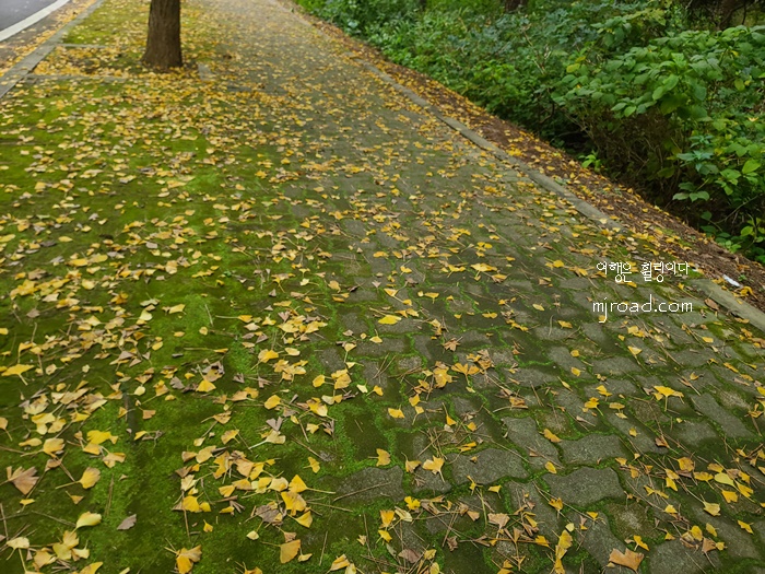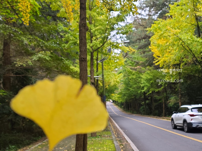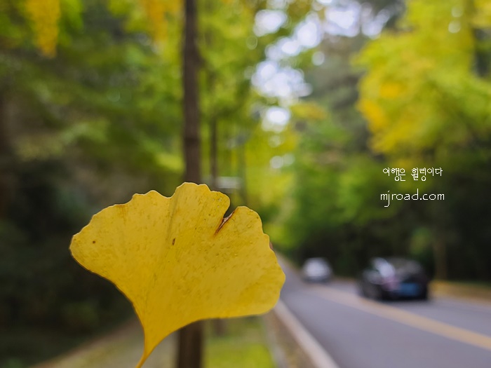 내가 간 날은 다행히 샛노란 은행나무길이 아니라 오히려 사람들도 거의 없어 좋았던 것 같다. 만약 은행나무가 샛노랗게 될 정도면 주차할 자리가 없을 정도니 대중교통을 이용해 가보는 것도 추천한다. 들어가는 입구에 버스 정류장이 있다.