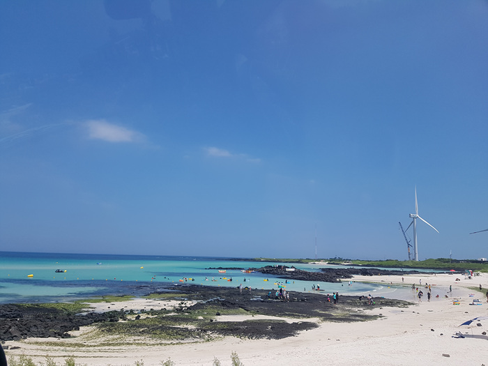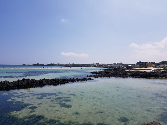 수심이 그리 깊지 않아서 바다의 색은 이렇듯 애매랄드빛을 내 뿜고 있습니다. 제주도를 처음 여행 왔을때 봤던 바다 그대로 .... 지금도 늘 한자리에서 낭만적인 풍경을 보여 주는 제주바다입니다.