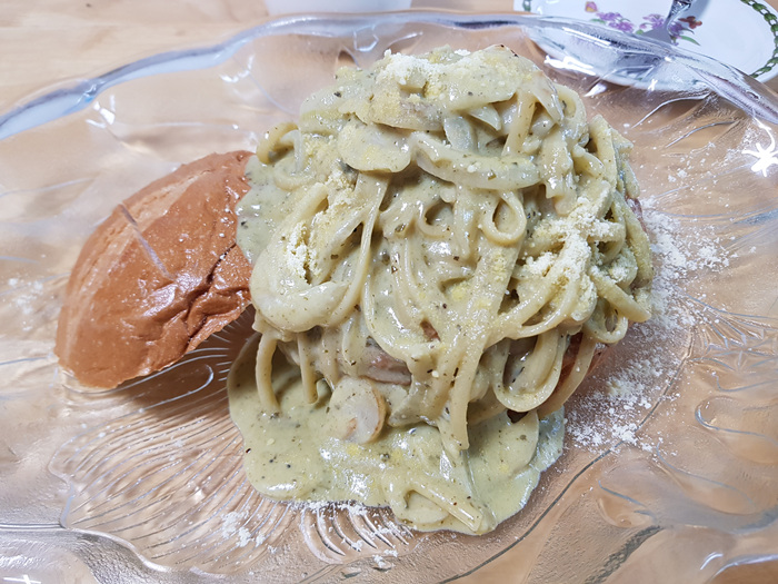 손님이 오실때나 특별한 날 이렇게 요리해 내 놓으면 정말 괜찮을 것 같다는 생각을 먹는 내내 들었습니다. 이마트 밀키트 제품을 애정하지만 바질크림 빠네 파스타 완전 대박이라는 생각이 들 정도로 고급진 맛이었습니다. ^^