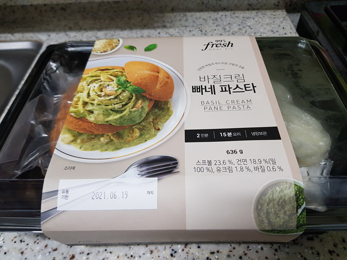 요즘 밀키트 제품 정말 잘 나오지요.. 저도 이마트 가면 일부러 밀키트 코너를 갈 정도로 밀키트 제품을 애정하고 있습니다. 유명 레스토랑에서나 맛볼법한 바질크림 빠네 파스타.... 집에서 직접 해 먹을 수 있게 밀키트 제품으로 나왔길래 만들기가 좀 힘들지 않을까하는 생각을 잠시 하긴 했지만 '아무렴 어렵게 만들걸 밀키트로 나오겠어?' 라는 생각에 모함을 하듯 구입해 왔습니다.