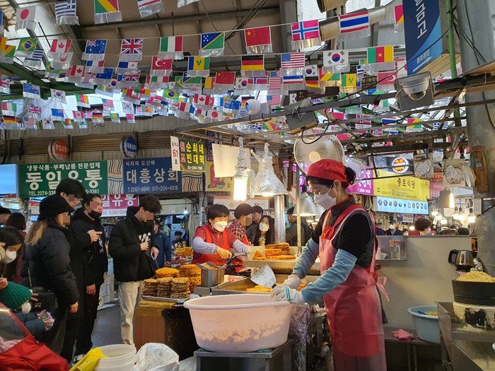 특히 국내 관광객 뿐만 아니라 외국인 관광객들이 많아 여기가 홍콩의 한 시장통 같은 느낌도 지울 수 없더라고요. 물론 국적도 다양하게 보여 세계적인 시장의 면모로 변하고 있는 광장시장의 모습이었습니다.