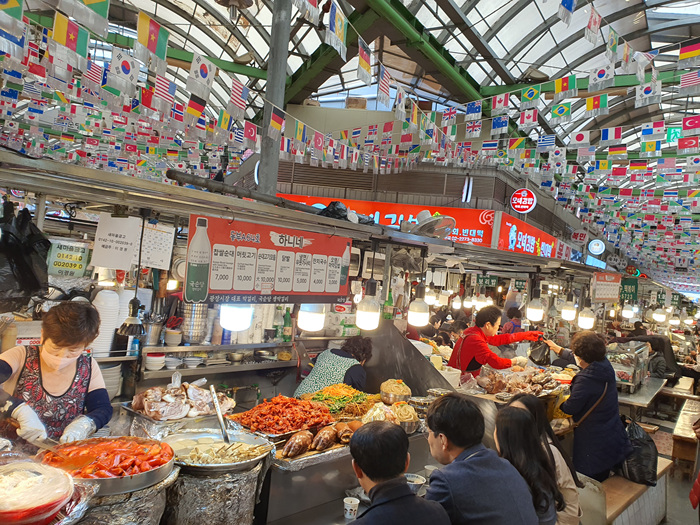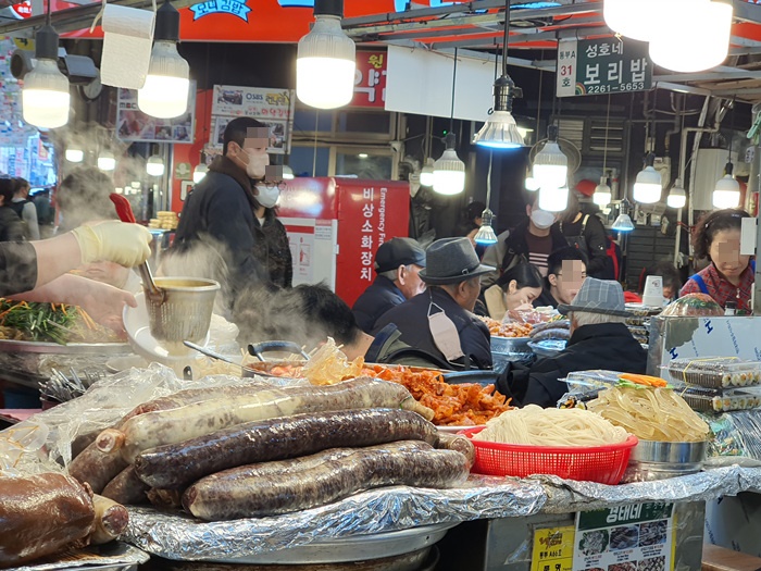 특히 국내 관광객 뿐만 아니라 외국인 관광객들이 많아 여기가 홍콩의 한 시장통 같은 느낌도 지울 수 없더라고요. 물론 국적도 다양하게 보여 세계적인 시장의 면모로 변하고 있는 광장시장의 모습이었습니다.
