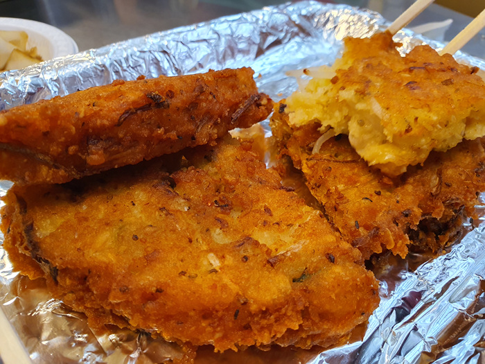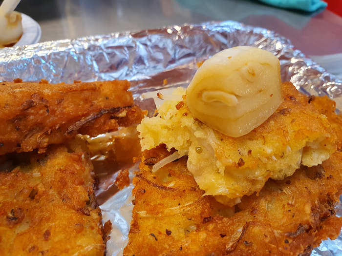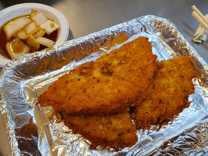 현장에서 바로 녹두를 갈아서 채소와 함께 조리해 주기 때문에 맛은 일품입니다. 뭐든 신선한 재료로 만든 것은 그 어떤 요리도 범잡을 수 없는 것 같아요.