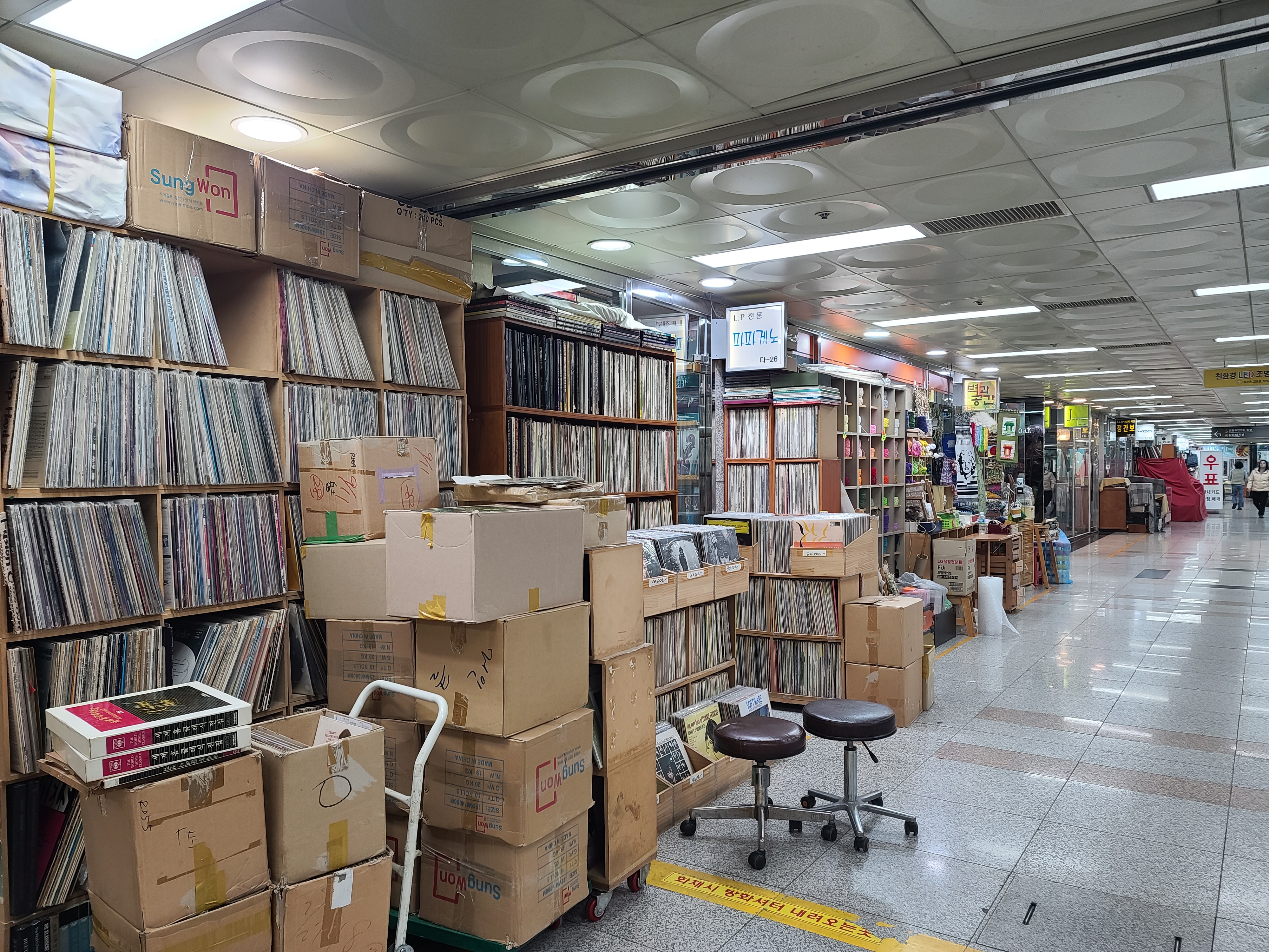 생각보다 많은 LP판이 지하상가 복도 주변으로 있어요. 방송에 나와 사람들이 많을 줄 알았는데 의외로 LP판 구경하러 오시는 분들은 거의 없더라고요.