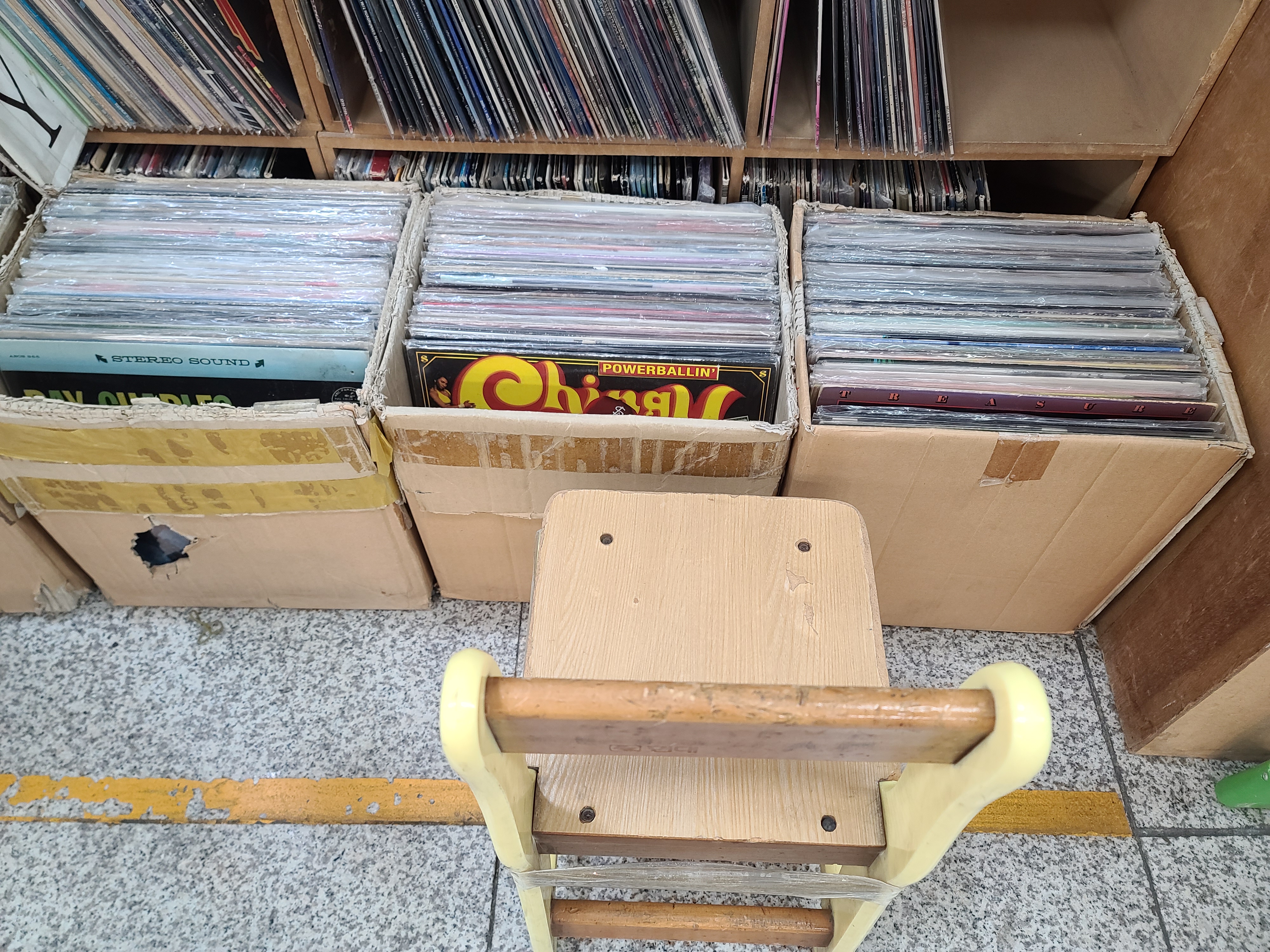 앉아서 편하게 LP판을 고르라는 의미인지 작은 의자도 곳곳에 있었어요. 보통 이렇게 밖에 진열된 LP판은 5,000 ~ 7,000원 정도 하고요. 가게내에선 제법 비싼 가격으로 판매를 하고 있었어요.