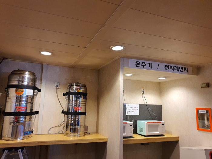 온수기와 전자레인지도 구비되어 있으니 어린아이 이유식등도 쉽게 데울수 있어요.